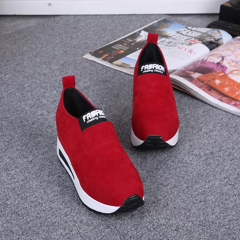 2016秋季新款单鞋女鞋子低帮鞋韩版时尚学生绒面圆头中跟内增高