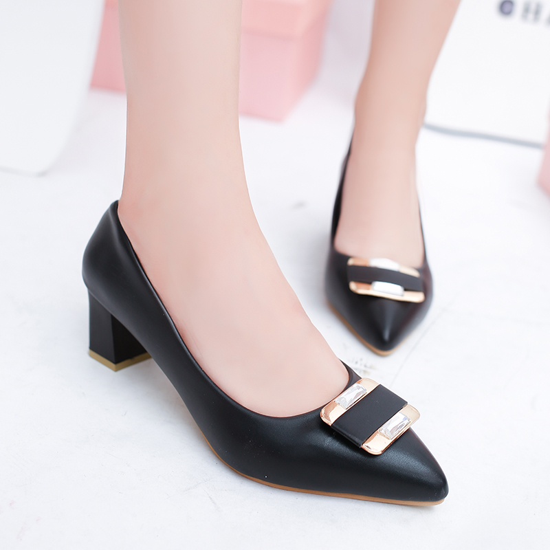 2016秋季新款单鞋女鞋子低帮鞋韩版时尚学生浅口尖头中跟粗跟