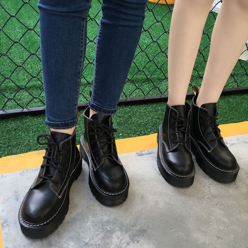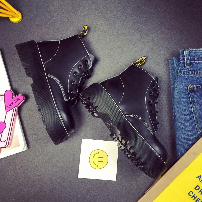 2017秋冬女靴子靴子韩版潮时尚保暖防滑马丁靴短靴圆头中跟粗跟