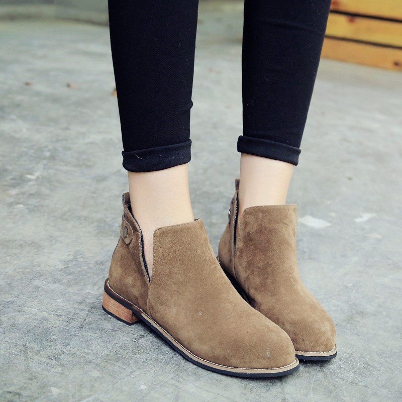2016秋冬季女靴子靴子韩版潮时尚保暖防滑绒面短靴粗跟