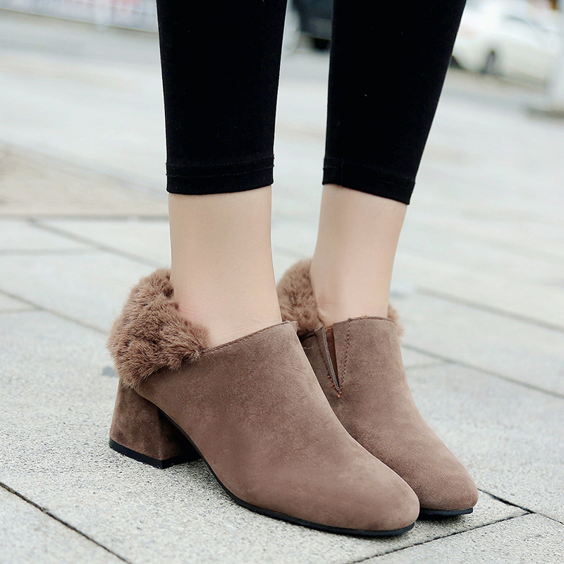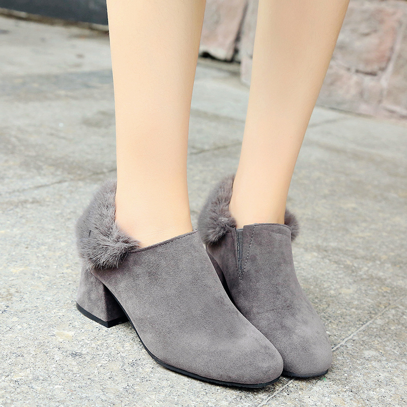2016秋冬季女靴子靴子韩版潮时尚保暖防滑绒面短靴 高跟鞋粗跟