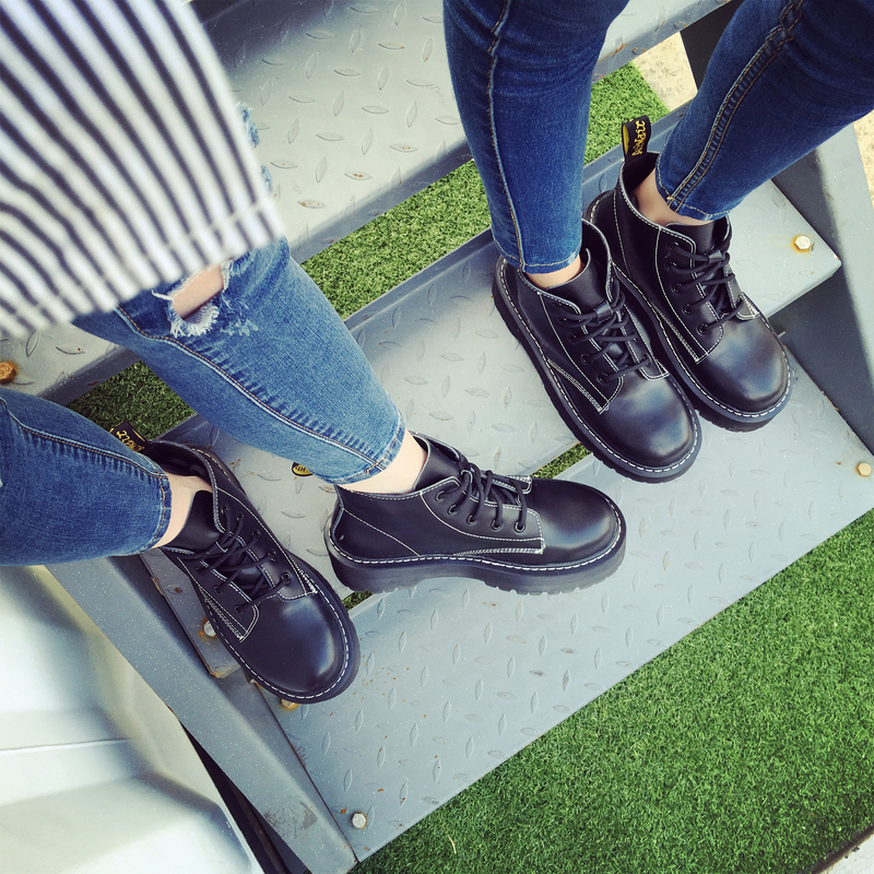 2017秋冬女靴子靴子韩版潮时尚保暖防滑马丁靴短靴圆头中跟松糕鞋