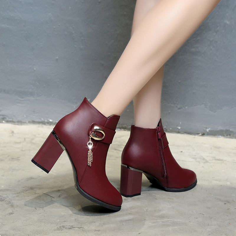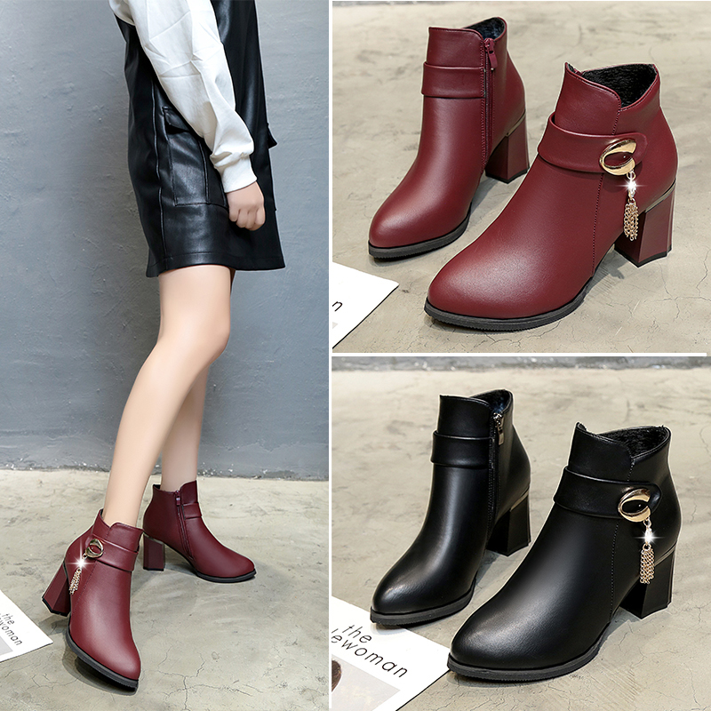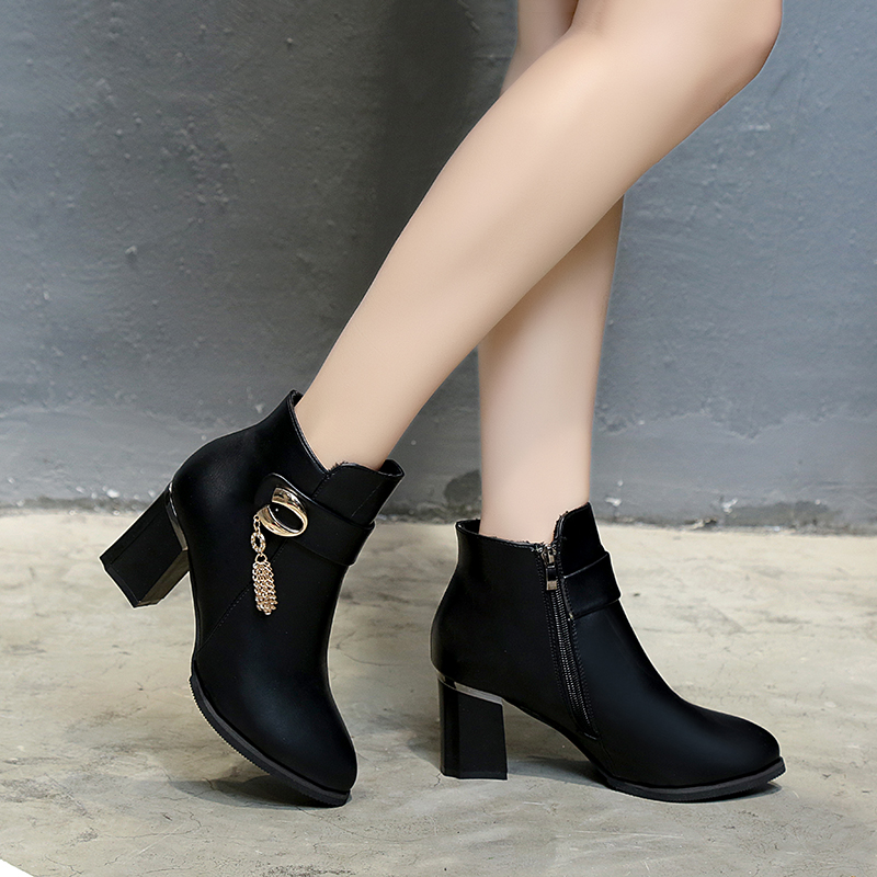 2017秋冬女靴子靴子韩版潮时尚保暖防滑马丁靴短靴尖头 高跟鞋粗跟