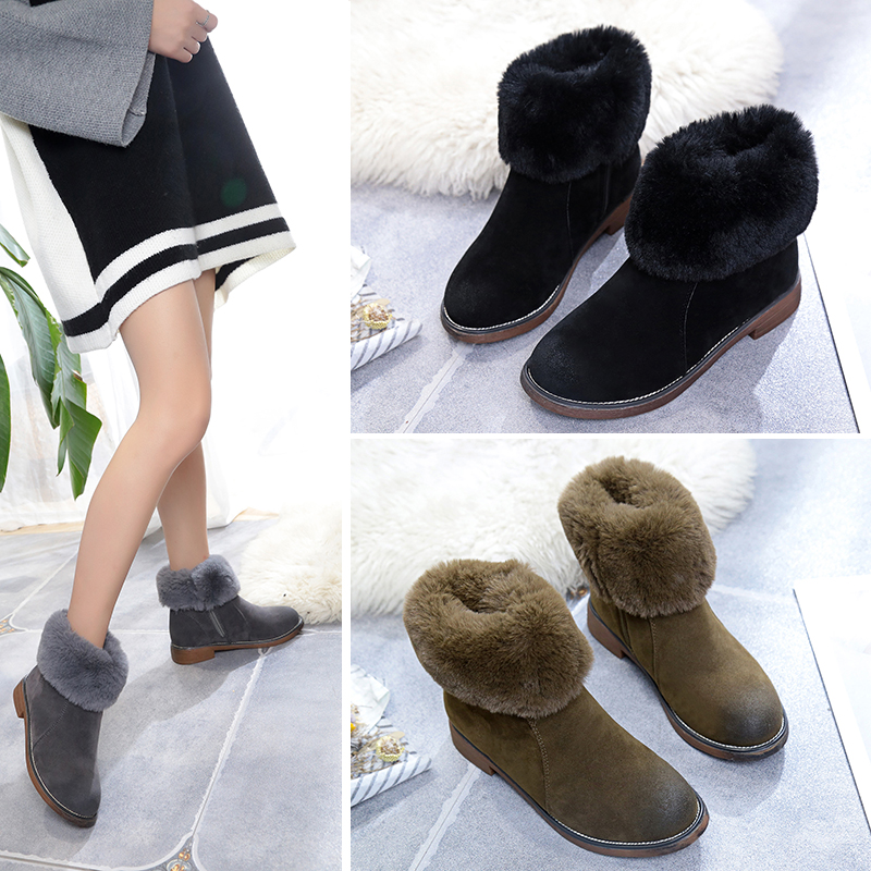 2017秋冬女靴子靴子韩版潮时尚保暖防滑牛皮真皮短靴圆头中跟粗跟