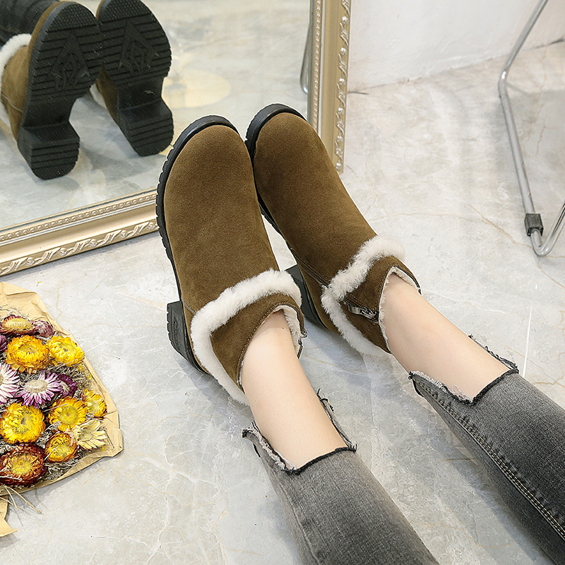 2017秋冬女靴子靴子韩版潮时尚保暖防滑牛皮真皮短靴圆头 高跟鞋粗跟