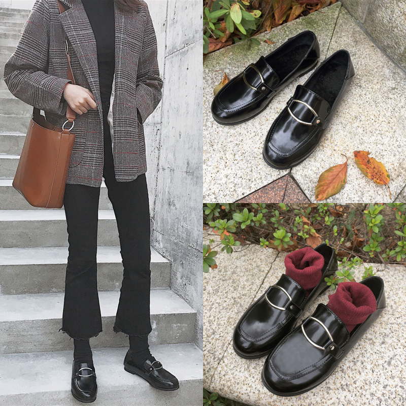 2017秋冬季新款单鞋女鞋子低帮鞋韩版时尚学生圆头平跟平底鞋