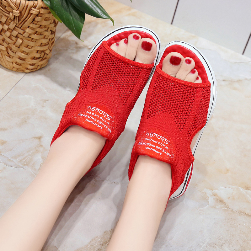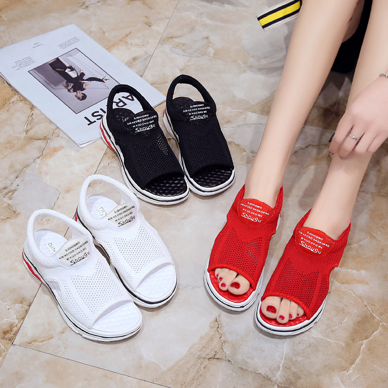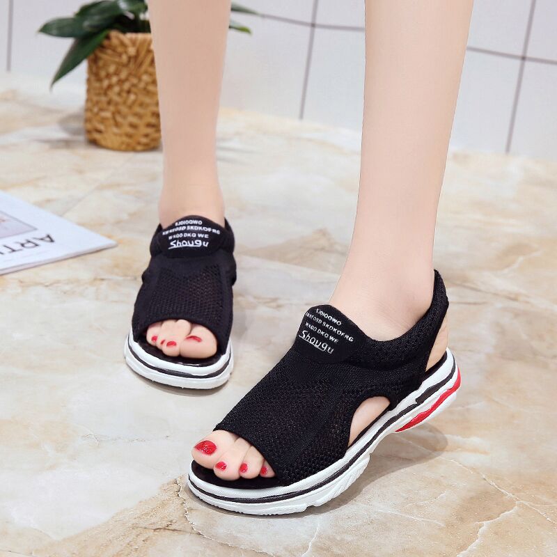 2019夏季凉鞋休闲鞋女鞋子凉鞋韩版时尚潮沙滩鞋网布露趾平跟