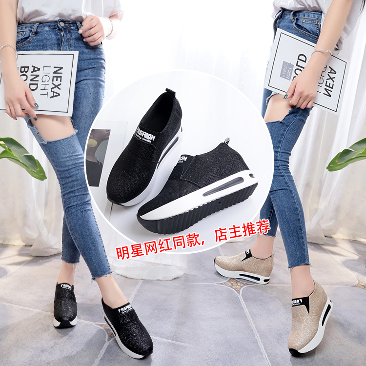 2018夏季新款单鞋女鞋子低帮鞋韩版时尚学生圆头中跟内增高