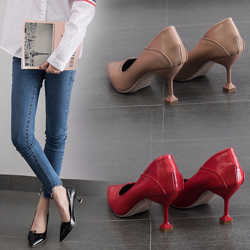 2018秋冬季新款单鞋女鞋子低帮鞋韩版时尚学生浅口尖头高跟鞋细跟