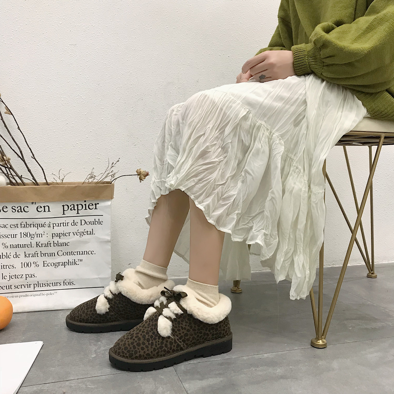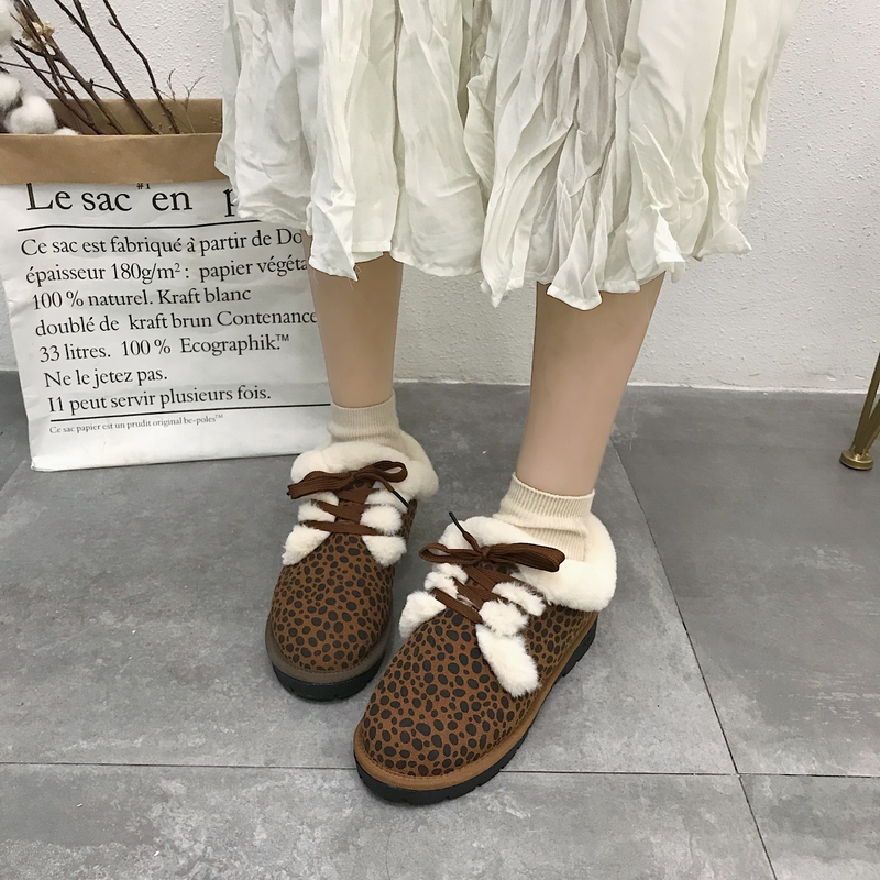 2018秋冬女靴子靴子韩版潮时尚保暖防滑绒面雪地靴短靴圆头粗跟