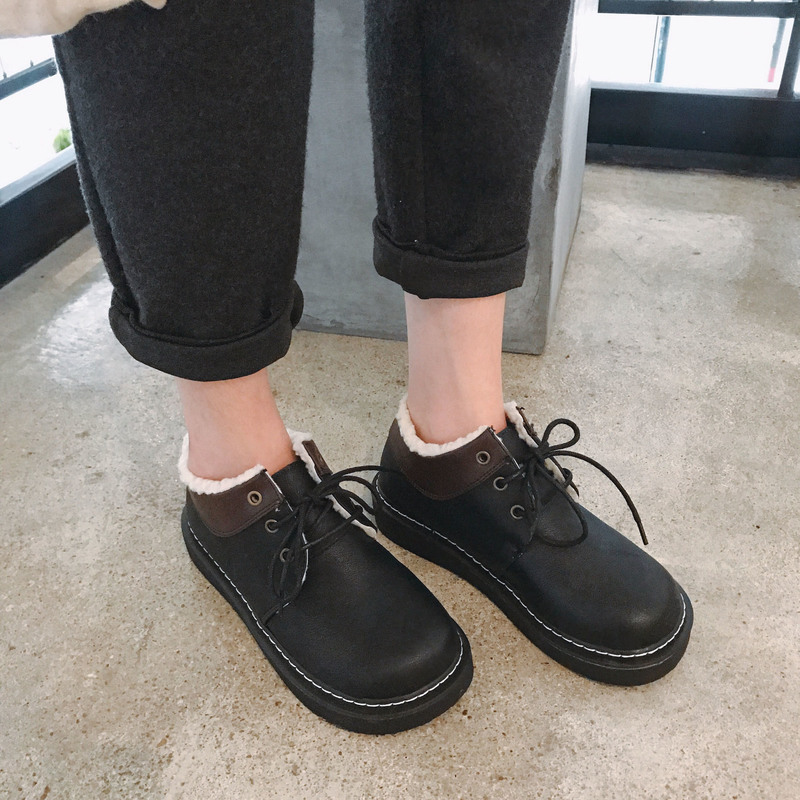 2018秋冬季新款单鞋女鞋子低帮鞋韩版时尚学生圆头中跟松糕鞋