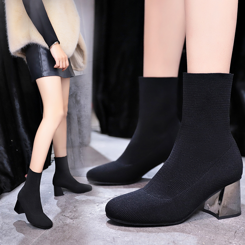 2018秋冬女靴子靴子韩版潮时尚保暖防滑绒面短靴中跟粗跟