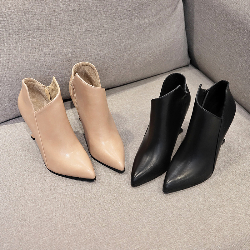 2018秋冬女靴子靴子韩版潮时尚保暖防滑切尔西靴短靴尖头 高跟鞋细跟