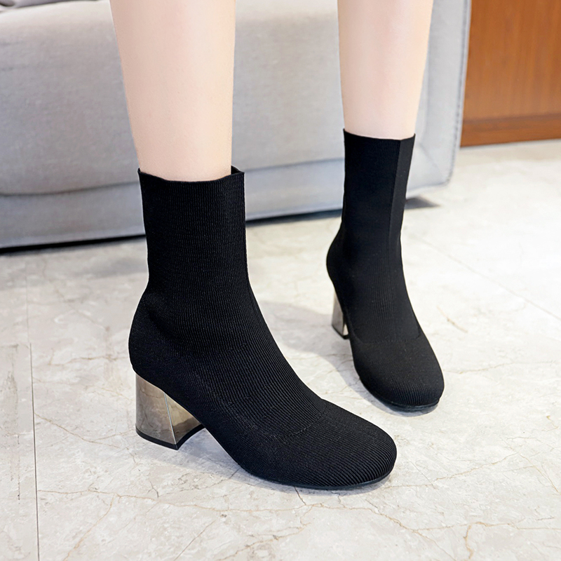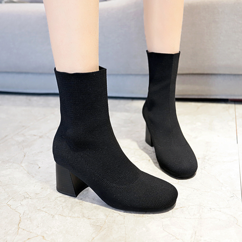 2018秋冬女靴子靴子韩版潮时尚保暖防滑绒面短靴 高跟鞋粗跟