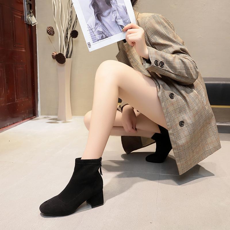 2018秋冬女靴子靴子韩版潮时尚保暖防滑绒面马丁靴短靴 高跟鞋粗跟