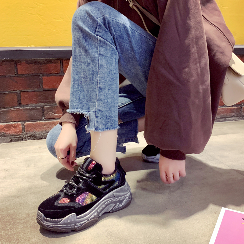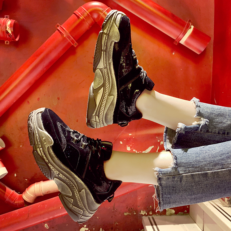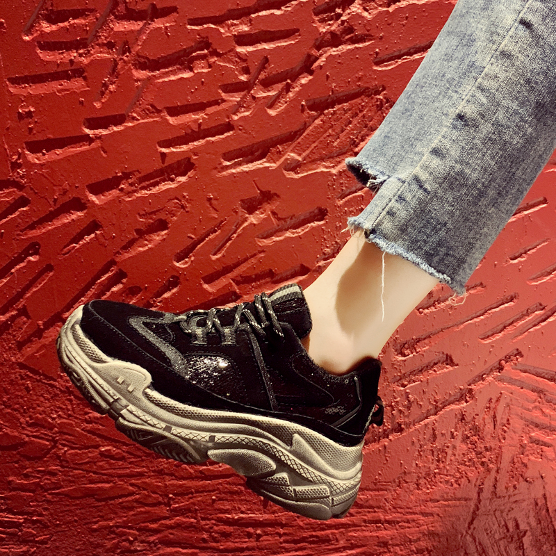 2018秋冬季新款单鞋女鞋子低帮鞋韩版时尚学生绒面圆头高跟鞋松糕鞋