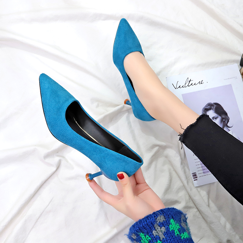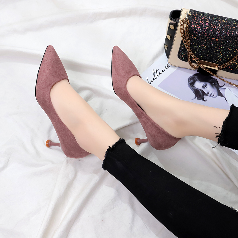 2018秋冬季新款单鞋女鞋子低帮鞋韩版时尚学生绒面浅口尖头高跟鞋细跟