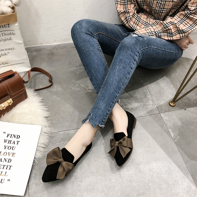 2022春夏季新款单鞋女鞋子低帮鞋韩版时尚学生绒面尖头粗跟