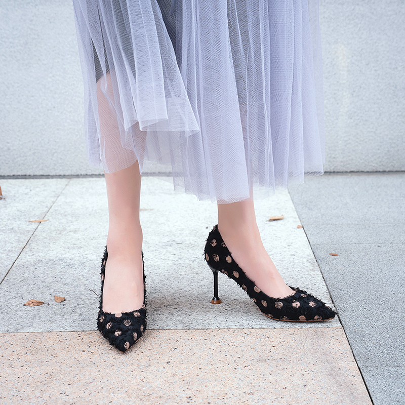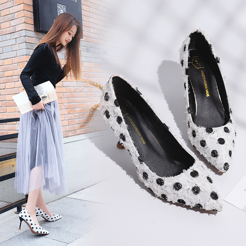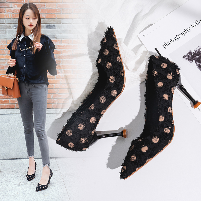 2018秋冬季新款单鞋女鞋子低帮鞋韩版时尚学生绒面尖头高跟鞋细跟