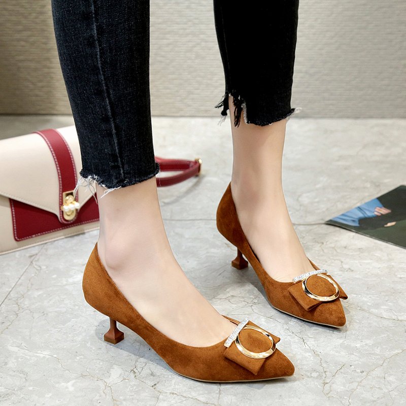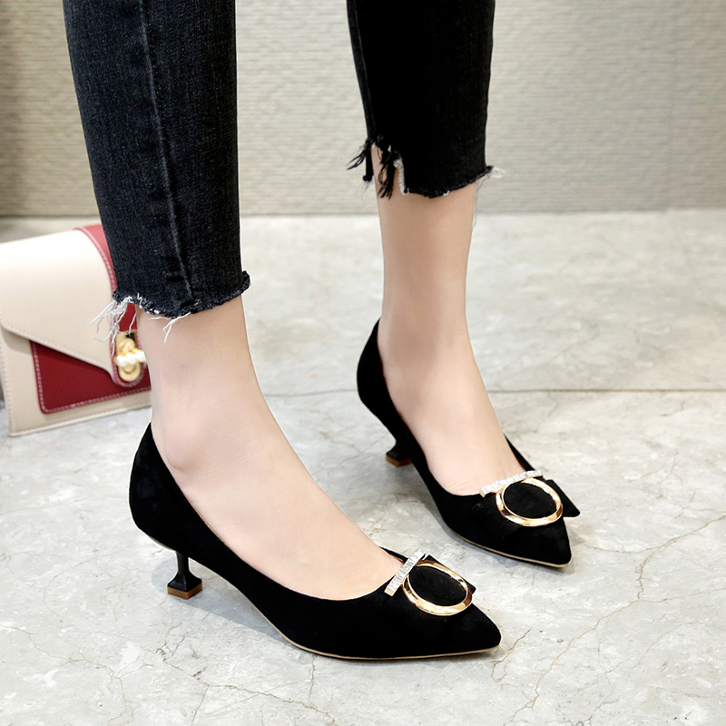 2018秋冬季新款单鞋女鞋子低帮鞋韩版时尚学生绒面尖头高跟鞋细跟