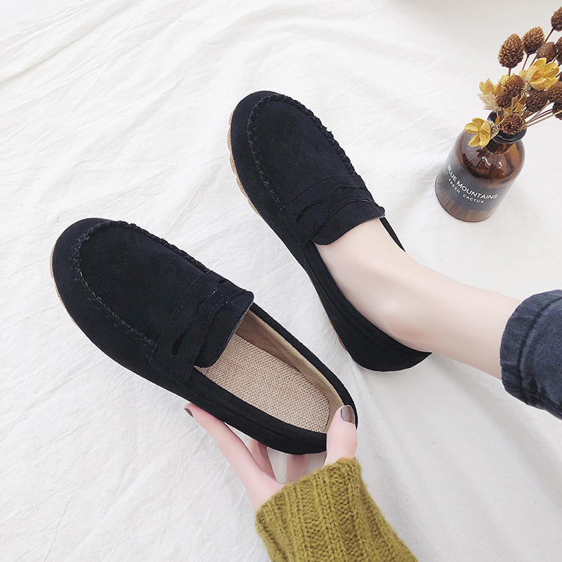 2019秋冬季新款单鞋女鞋子低帮鞋韩版时尚学生绒面圆头