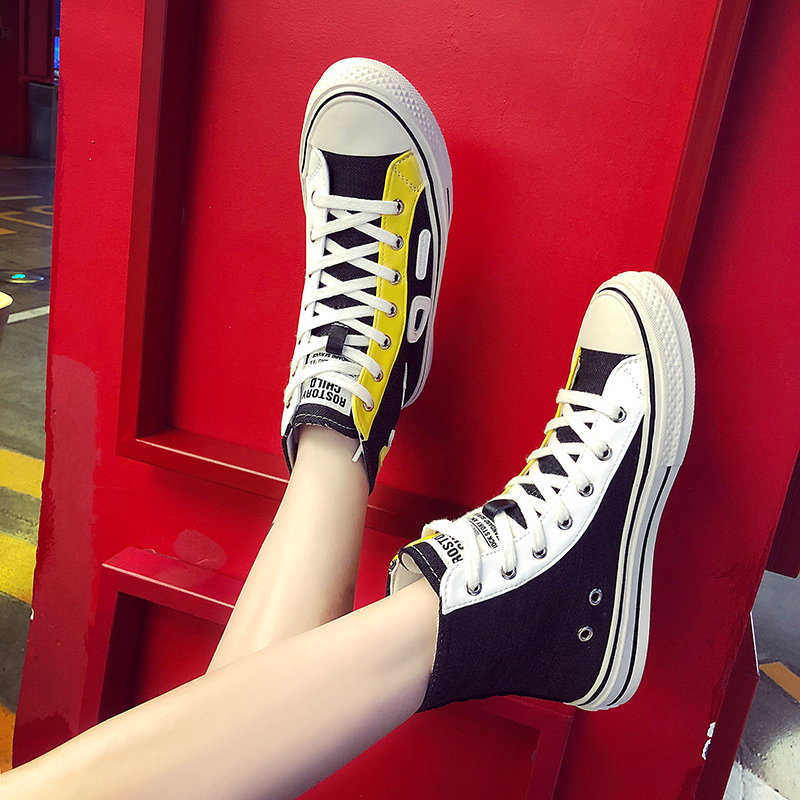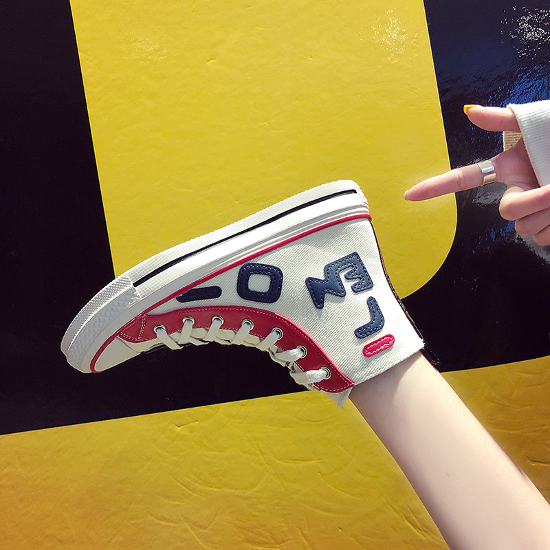 一脚蹬懒人鞋白色帆布鞋女鞋子帆布鞋欧美英伦时尚学生高帮