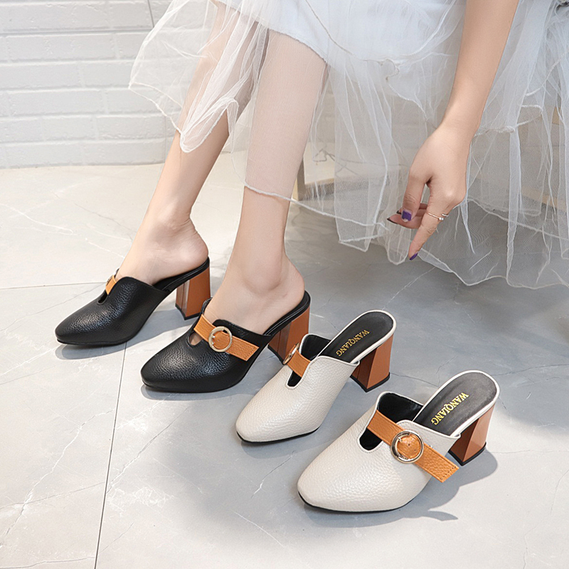 2019夏季凉拖鞋休闲鞋女鞋子拖鞋韩版潮时尚学生高跟鞋粗跟