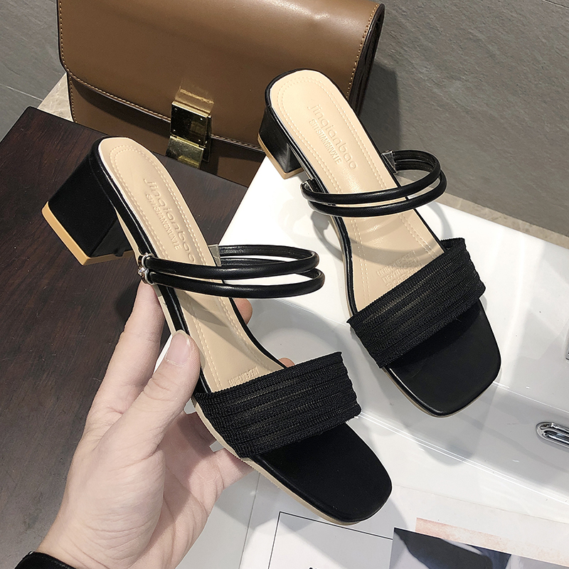2019夏季凉拖鞋休闲鞋女鞋子拖鞋韩版潮时尚学生中跟松糕鞋