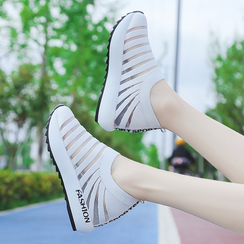 2020秋冬季新款单鞋女鞋子低帮鞋韩版时尚学生网布圆头中跟松糕鞋