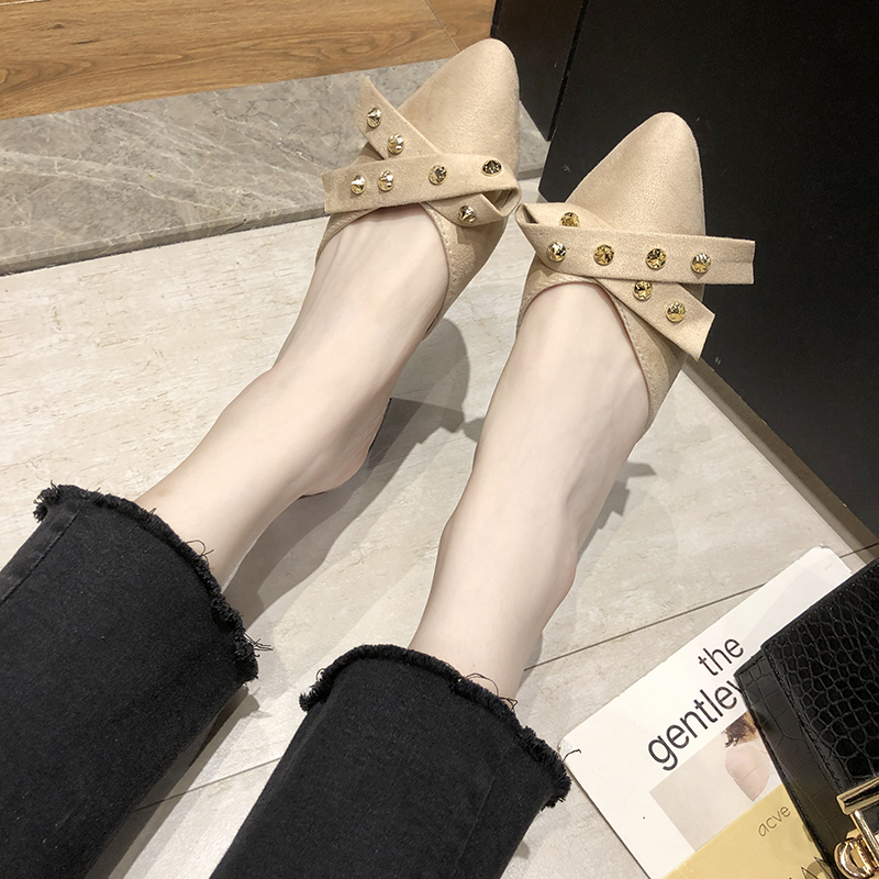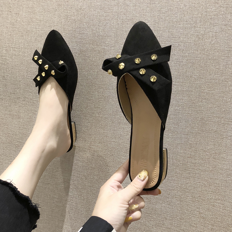 2019夏季凉拖鞋休闲鞋女鞋子拖鞋韩版潮时尚学生简约绒面 包头低跟