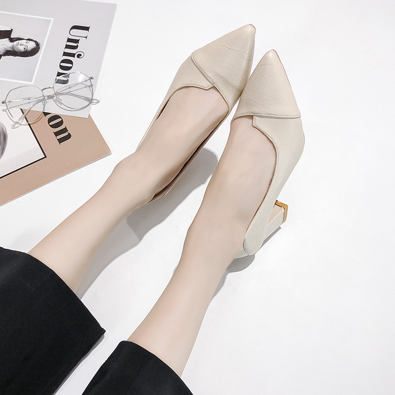 2019秋冬季新款单鞋女鞋子低帮鞋韩版时尚学生浅口尖头高跟鞋粗跟