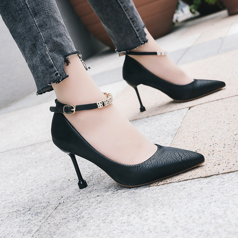 2019秋冬季新款单鞋女鞋子低帮鞋韩版时尚学生浅口尖头高跟鞋细跟
