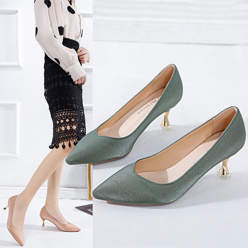 2021春夏季新款单鞋女鞋子低帮鞋韩版时尚学生英伦浅口尖头细跟