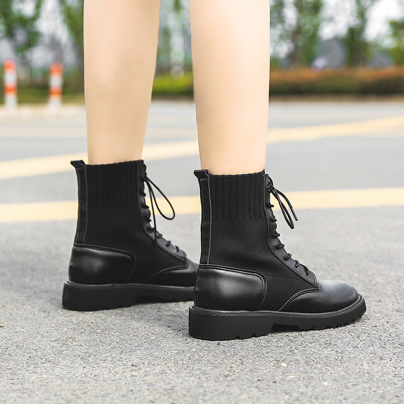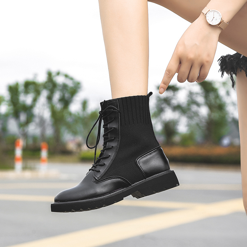 2019秋冬女靴子靴子韩版潮时尚保暖防滑马丁靴短靴圆头中跟粗跟