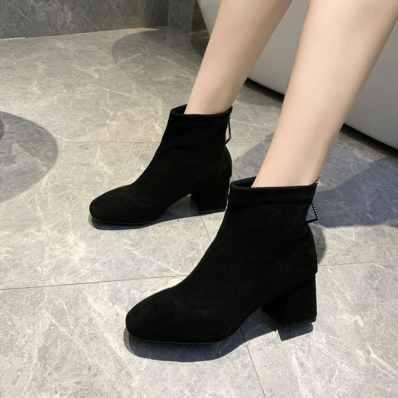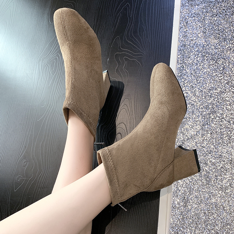 2019秋冬女靴子靴子韩版潮时尚保暖防滑绒面马丁靴短靴圆头中跟粗跟