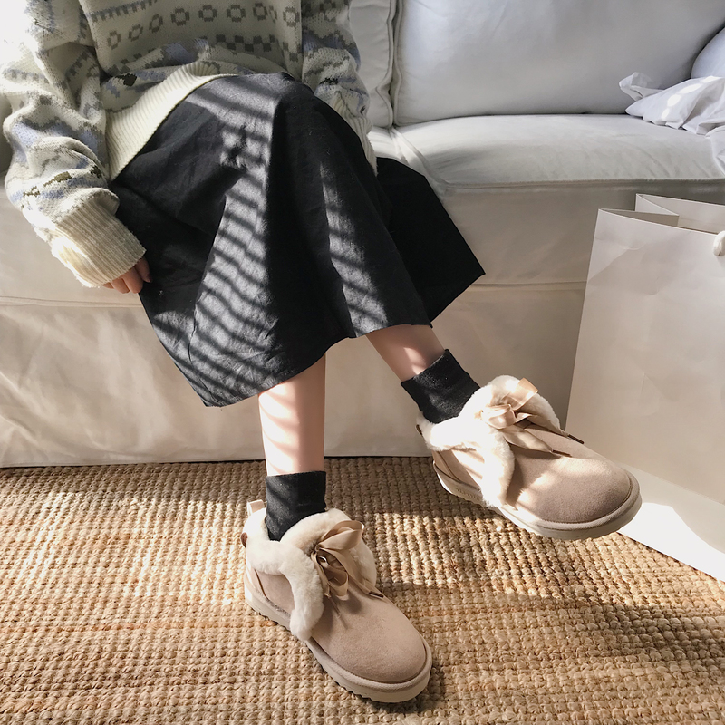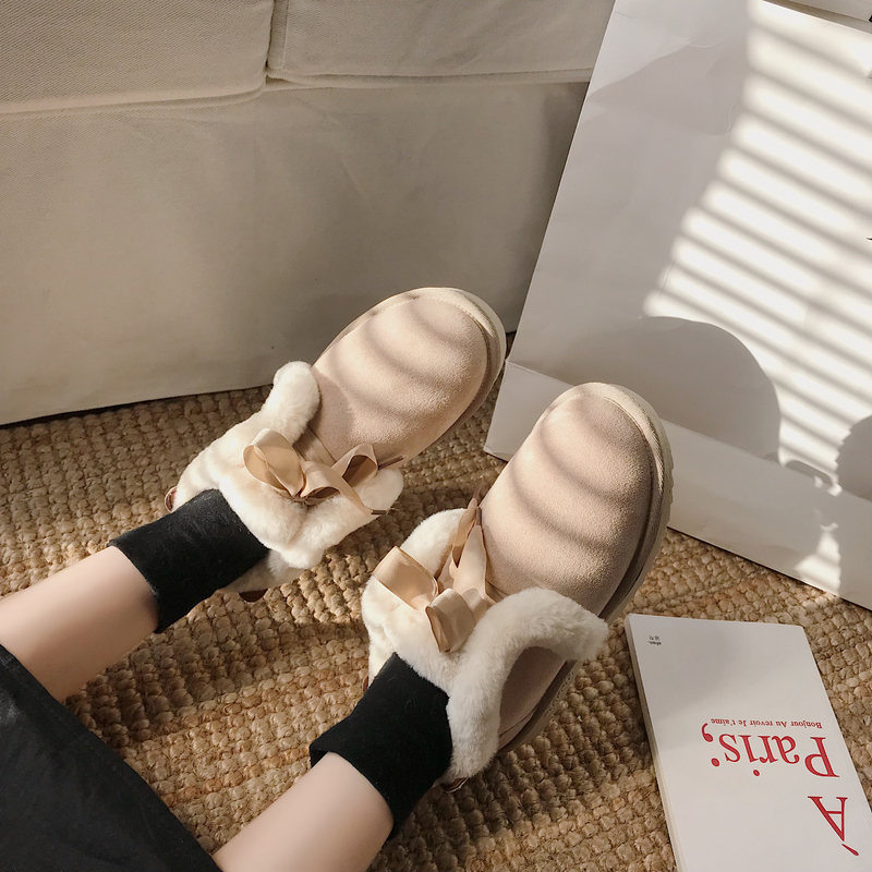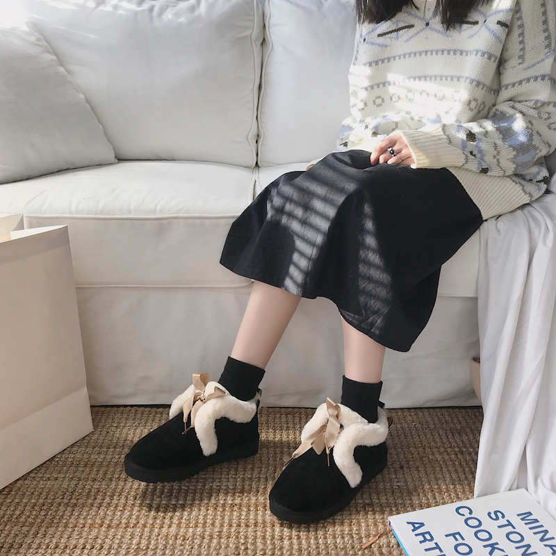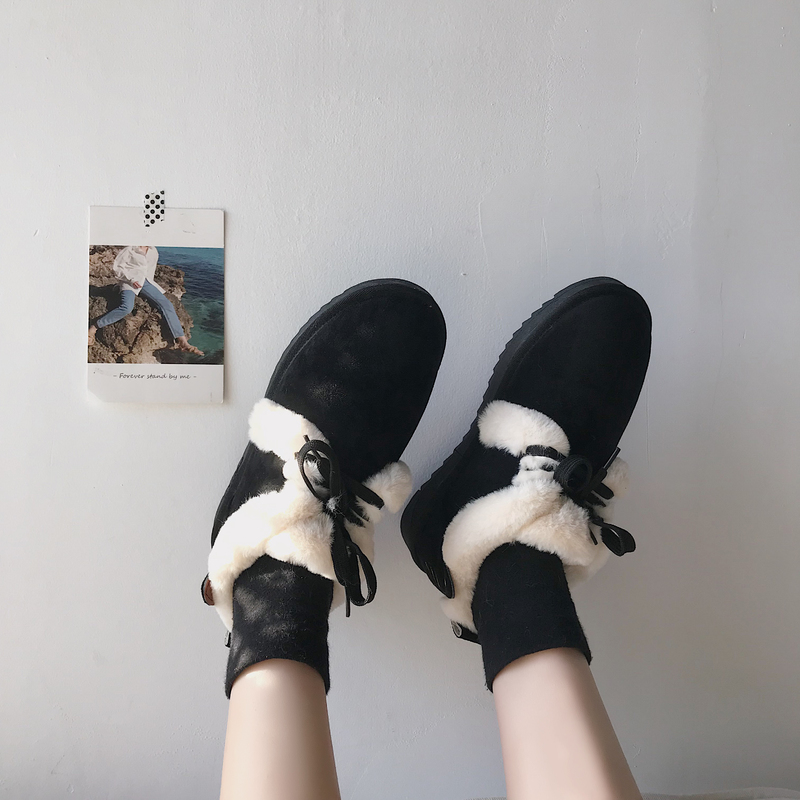 2019秋冬女靴子靴子韩版潮时尚保暖防滑绒面雪地靴短靴圆头