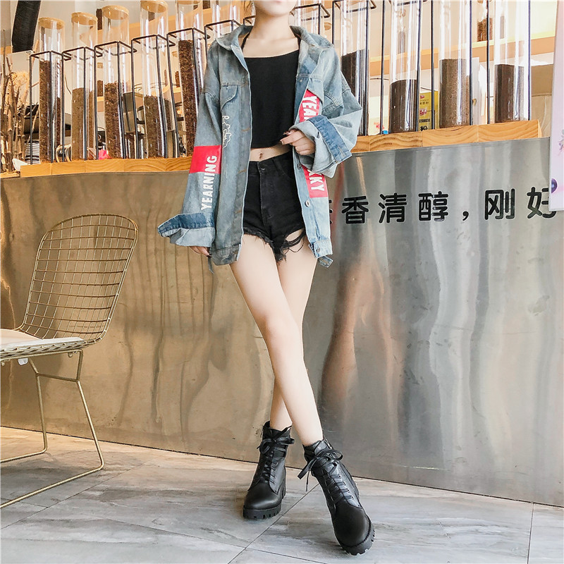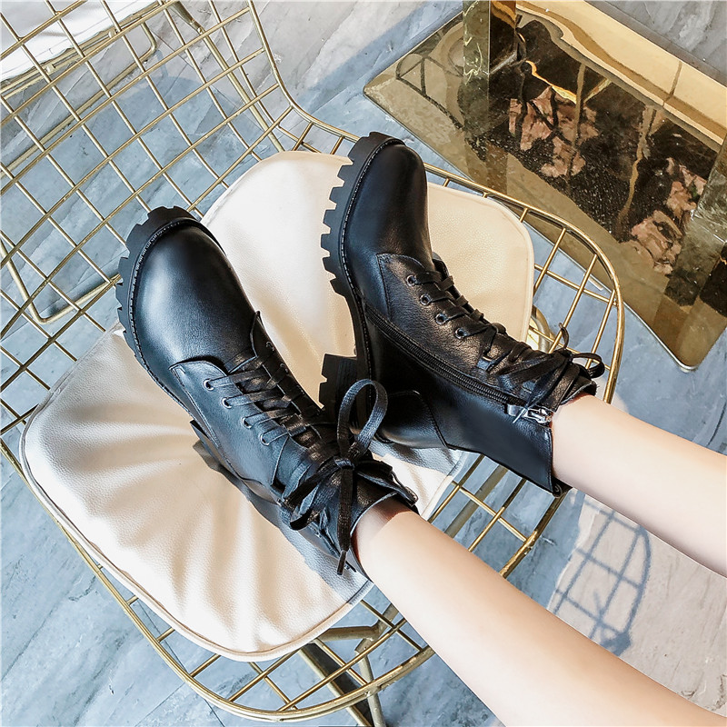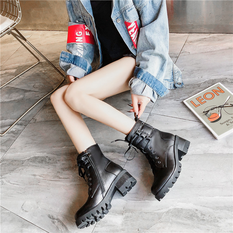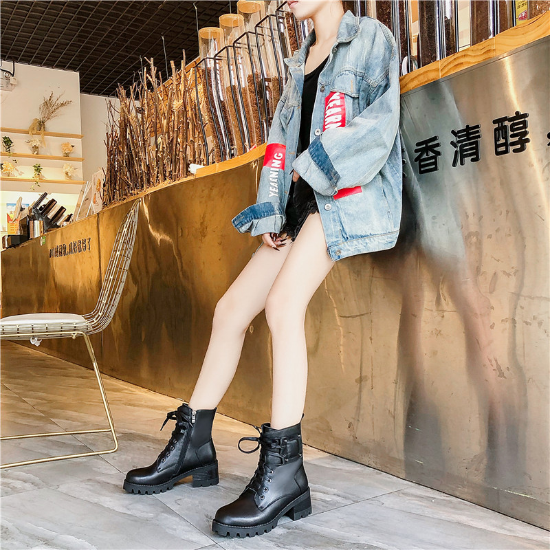 2019秋冬女靴子靴子韩版潮时尚保暖防滑马丁靴短靴圆头中跟粗跟