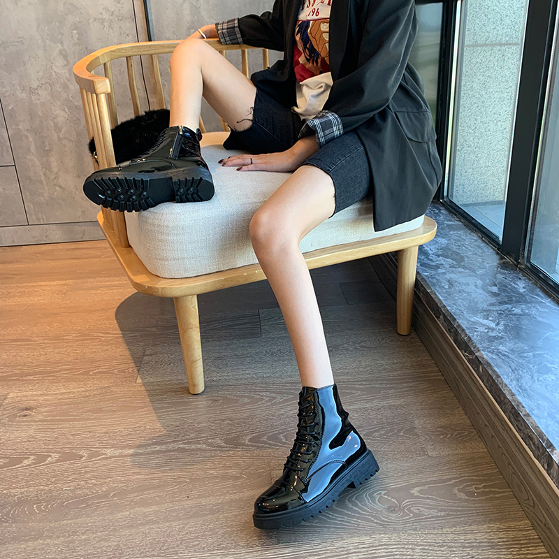 2019秋冬女靴子靴子韩版潮时尚保暖防滑马丁靴短靴圆头中跟粗跟