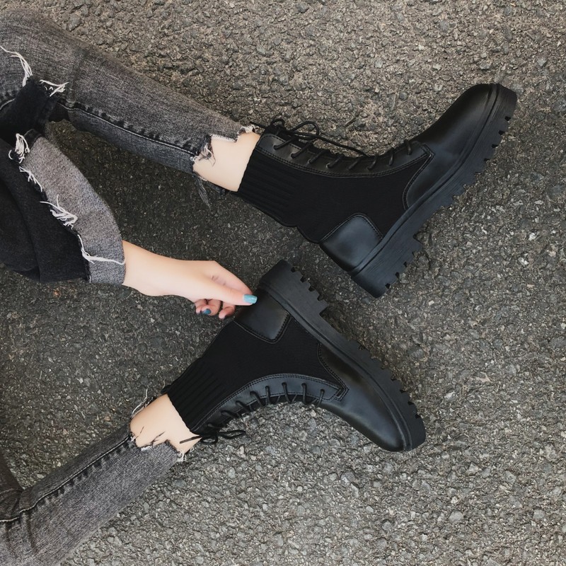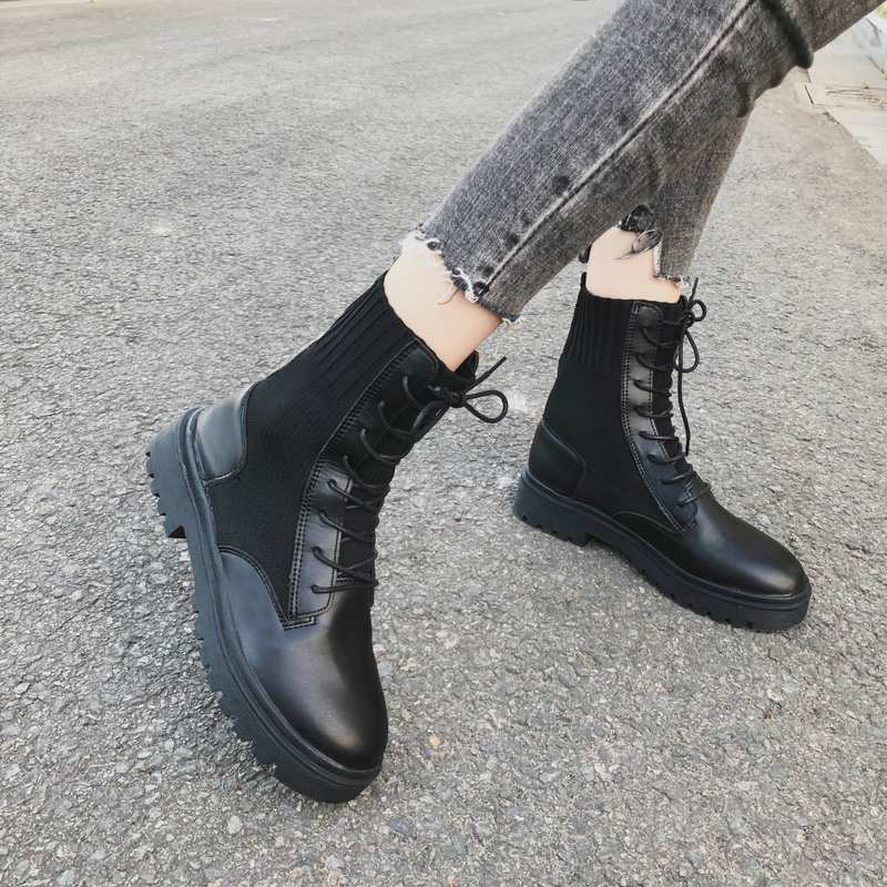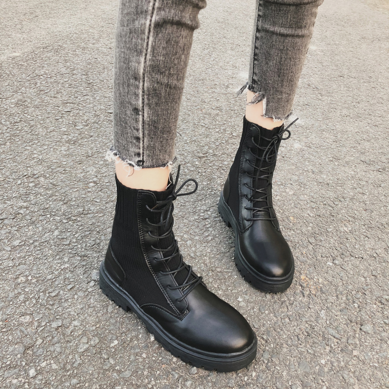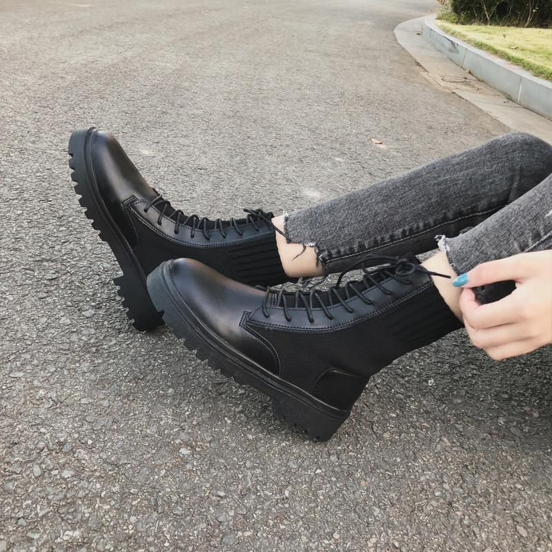 2019秋冬女靴子靴子韩版潮时尚保暖防滑马丁靴短靴圆头粗跟防水台