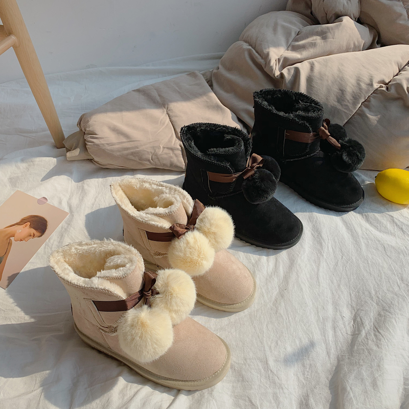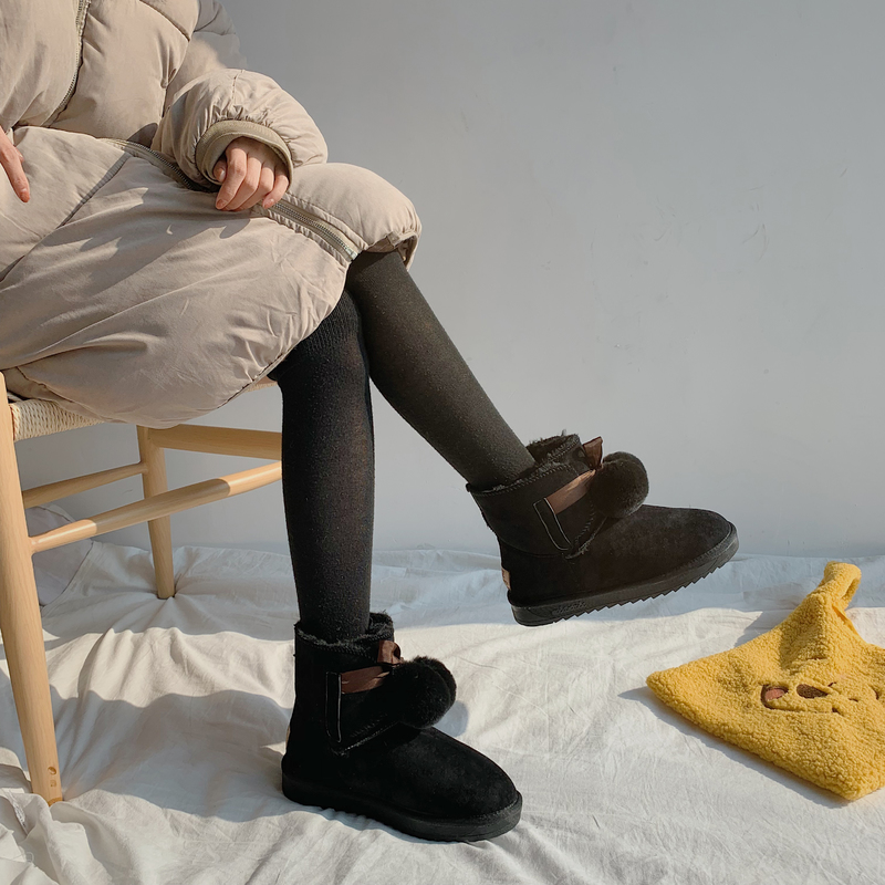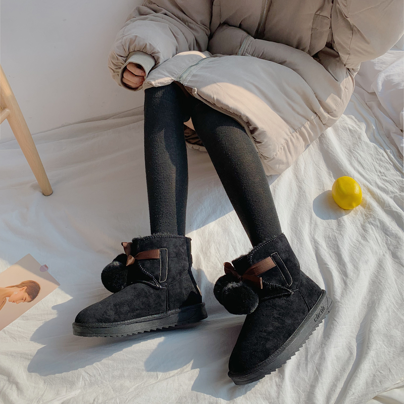 2019秋冬女靴子靴子韩版潮时尚保暖防滑绒面马丁靴短靴圆头中跟粗跟