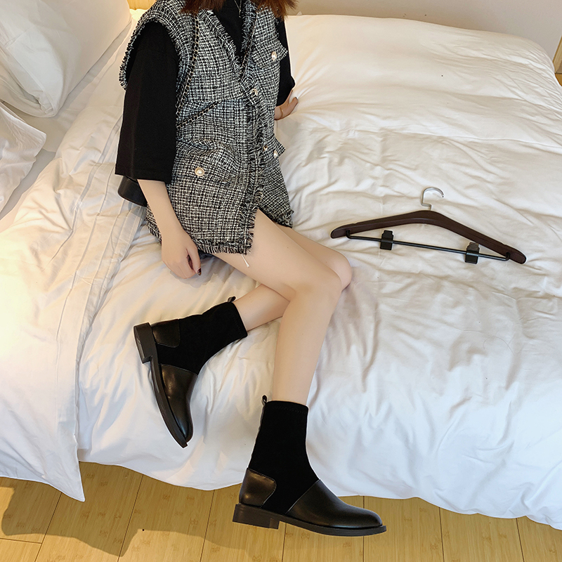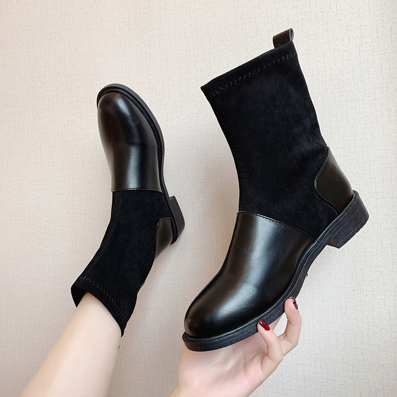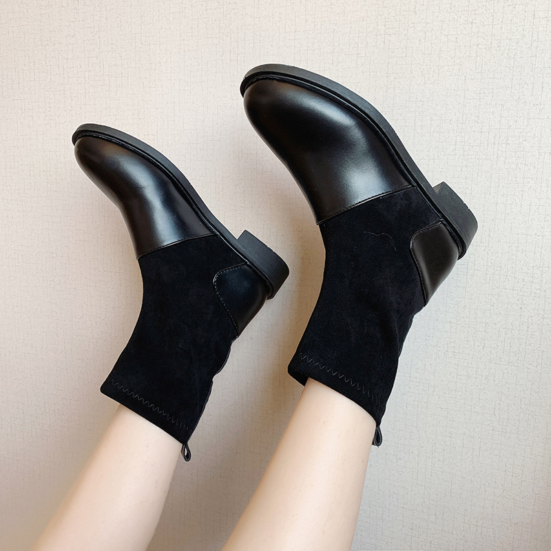 2019秋冬女靴子靴子韩版潮时尚保暖防滑切尔西靴短靴圆头中跟粗跟
