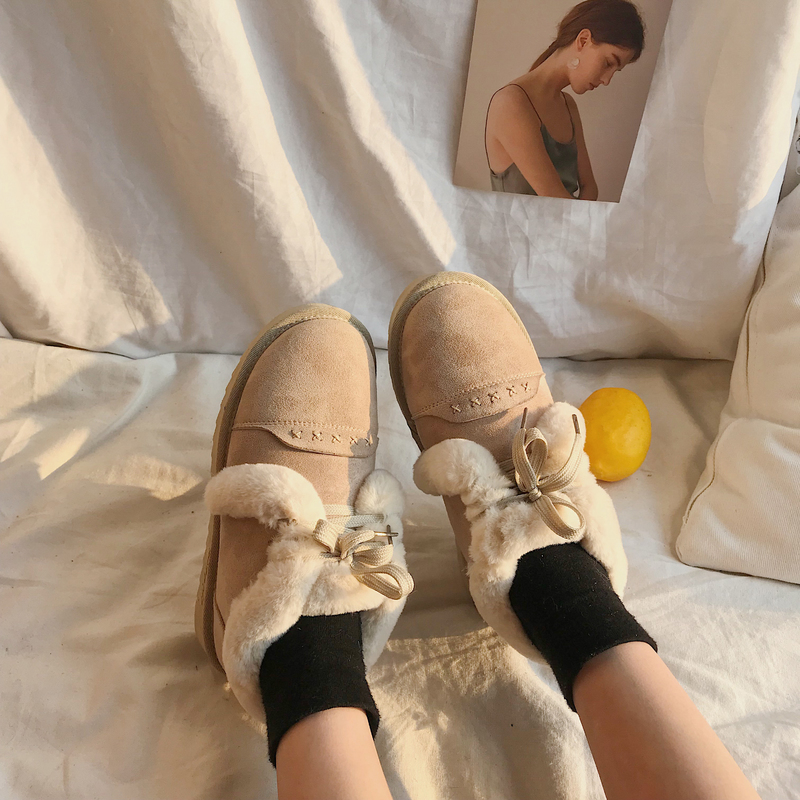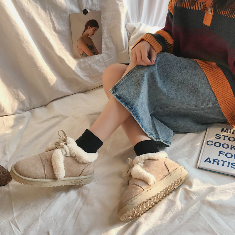 2019秋冬女靴子靴子韩版潮时尚保暖防滑绒面雪地靴短靴圆头