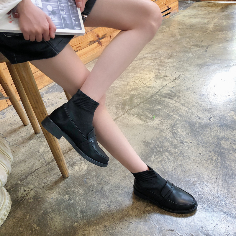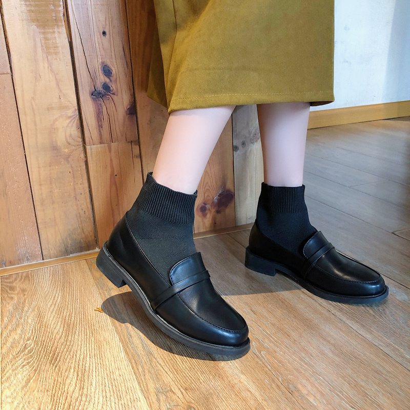 2019秋冬女靴子靴子韩版潮时尚保暖防滑马丁靴短靴圆头平跟