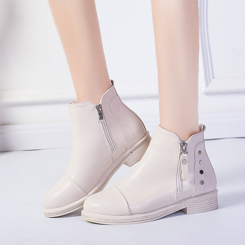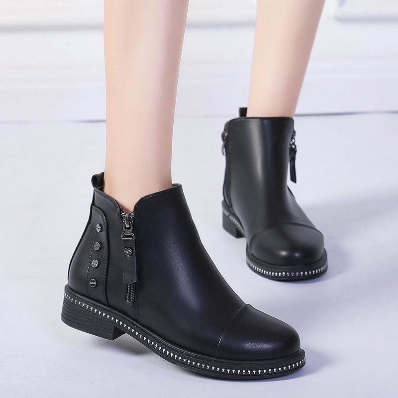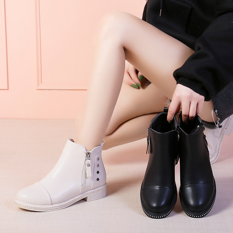 2019秋冬女靴子靴子韩版潮时尚保暖防滑切尔西靴短靴圆头中跟粗跟