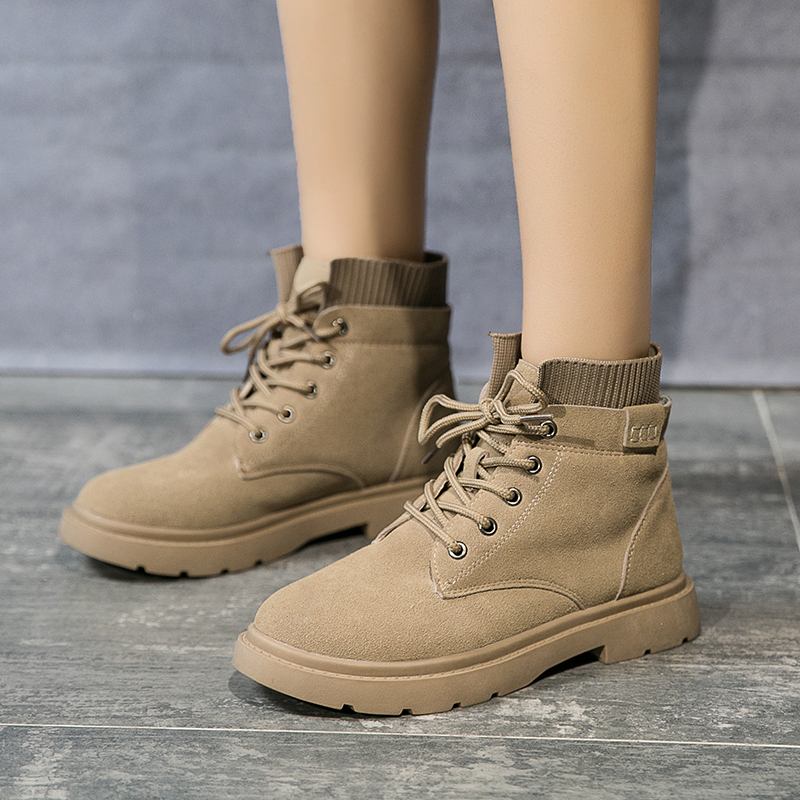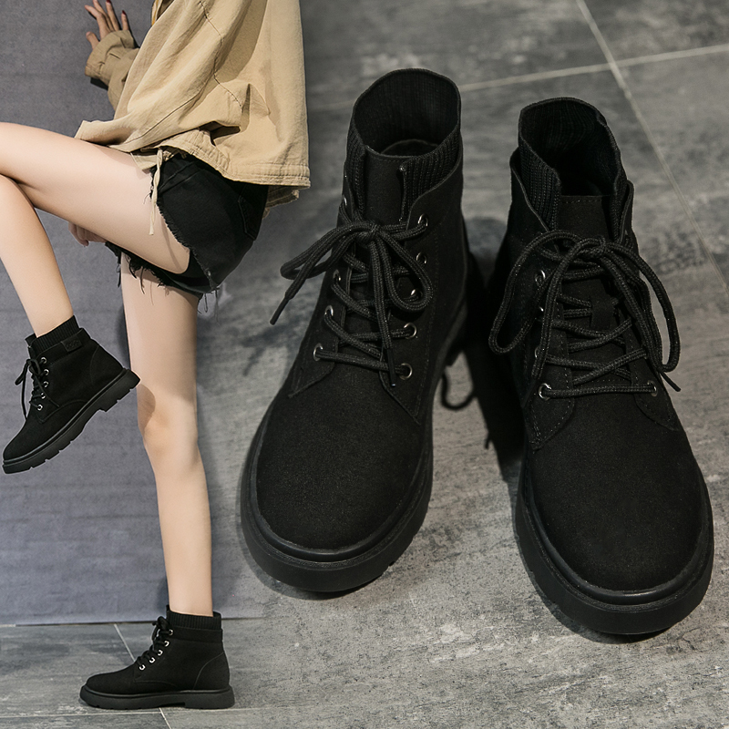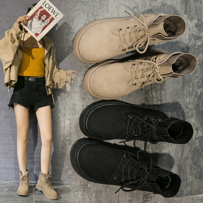 2019秋冬女靴子靴子韩版潮时尚保暖防滑绒面马丁靴短靴圆头中跟粗跟