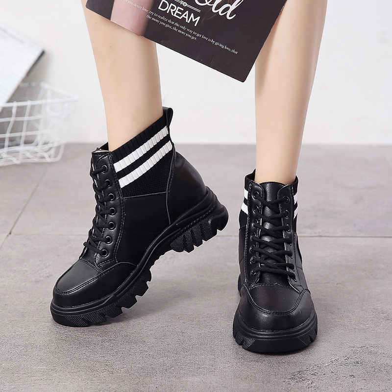 2019秋冬女靴子靴子韩版潮时尚保暖防滑马丁靴短靴圆头中跟粗跟