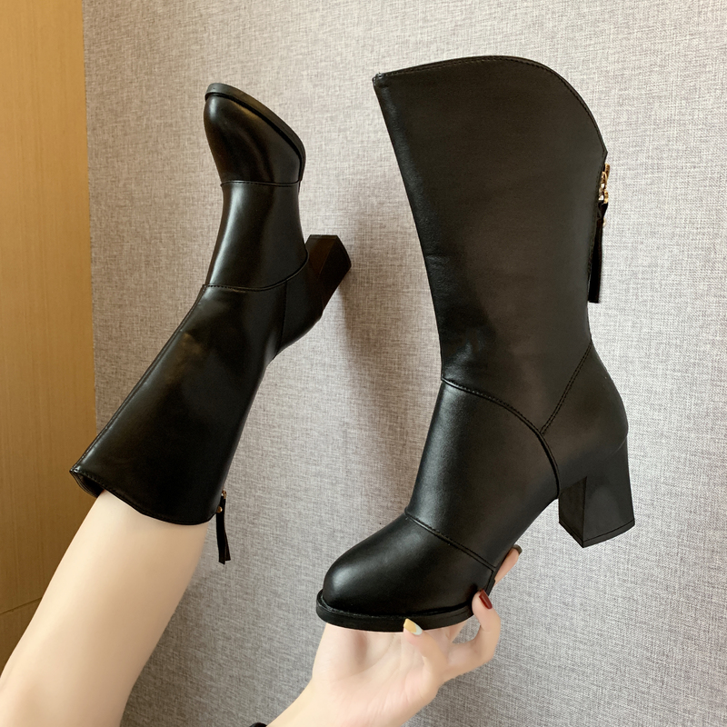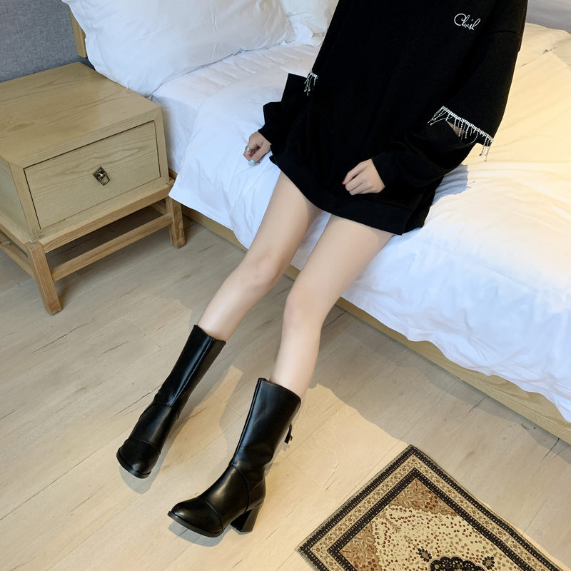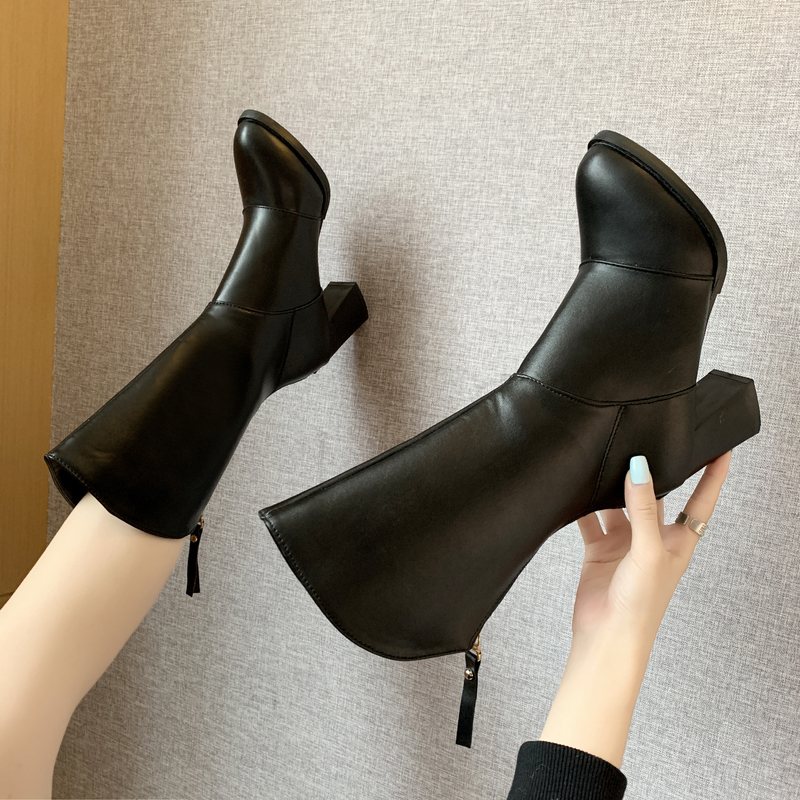2019秋冬女靴子靴子韩版潮时尚保暖防滑切尔西靴短靴圆头中跟粗跟