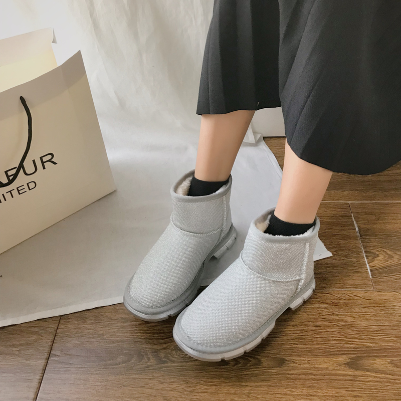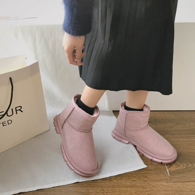 2019秋冬女靴子靴子韩版潮时尚保暖防滑绒面雪地靴短靴圆头