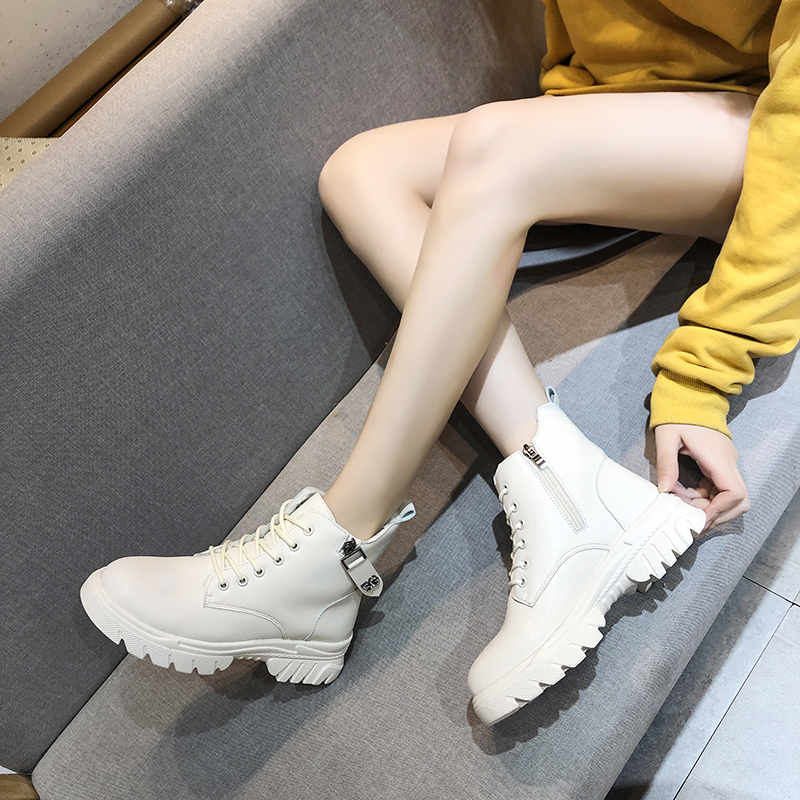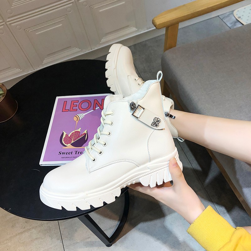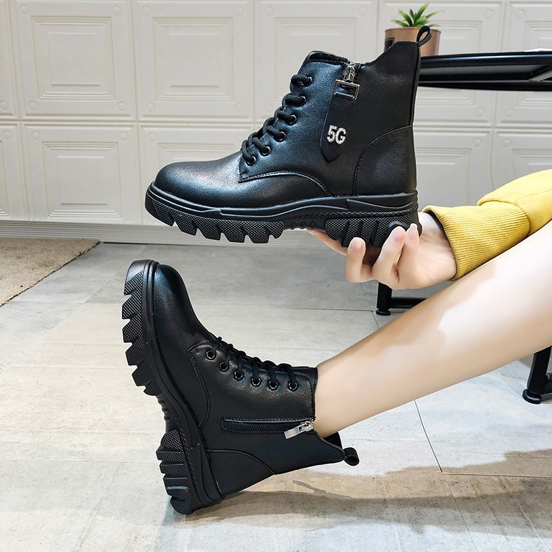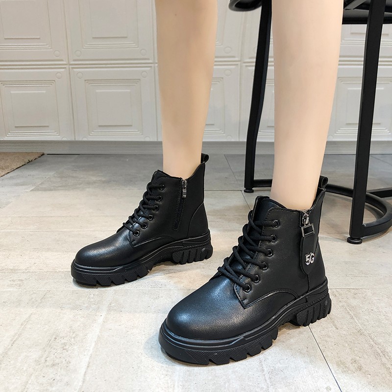 2019秋冬女靴子靴子韩版潮时尚保暖防滑马丁靴短靴圆头中跟粗跟