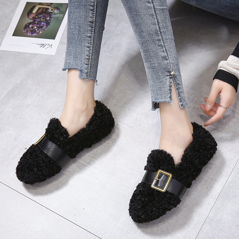2019秋冬季新款单鞋女鞋子低帮鞋韩版时尚学生绒面圆头